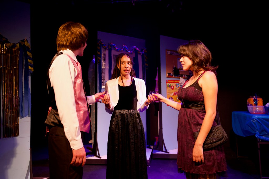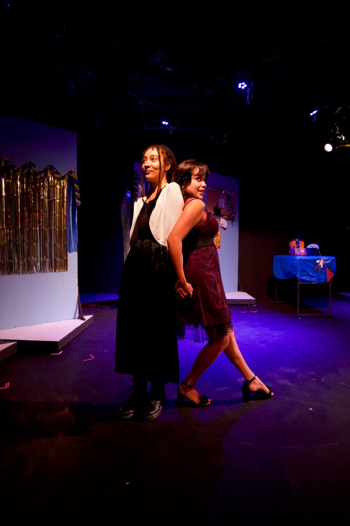 In the candy-coated corporate world of Pride Month America, finding a sincere exploration of the queer experience can be difficult, but luckily, fledgling local company Broad Theatre has brought us just that in their latest, a heart-stirring exploration of queer longing at the turn of the 21st Century in Unbury Your Gays. On the page, it’s a simple story: two young teen girls are preparing for the school dance, where one of them will finally get their first kiss from the cutest boy in school. What blooms from this fertile garden is a subtle dance of subtext, repressed feelings, words-unsaid, and just a touch of necromancy.